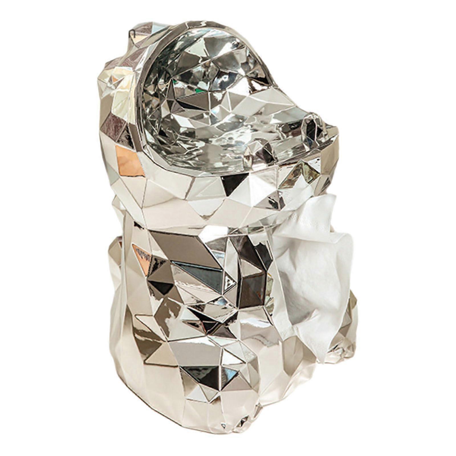 Dinosaur Tissue Box Holder with Novelty Design for Living Room Decor, Silver Figurine Dispenser