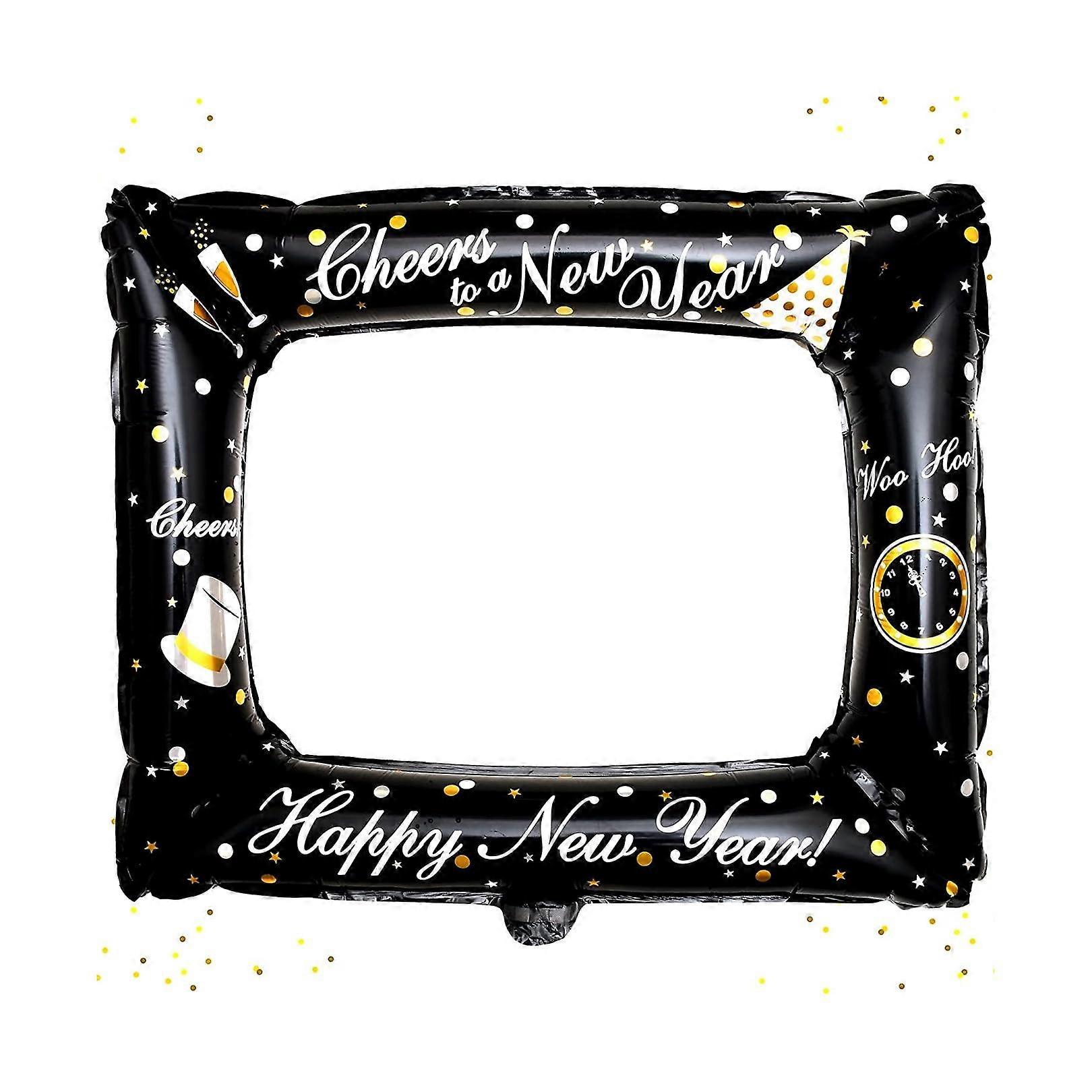 Years Eve Decorations 2026 Black Gold Inflatable Photo Booth Frame 53x58cm Party Props