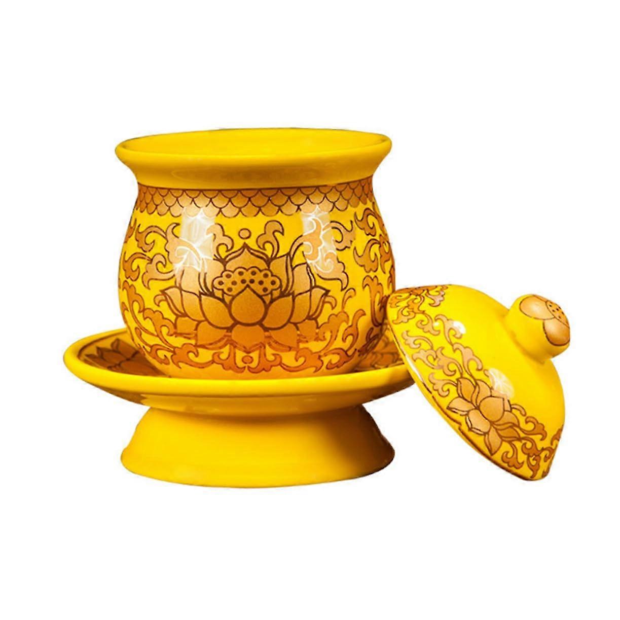 Buddhist Offering Bowl Ceramic Prayer Cup with Lotus Pattern for Temple and Home Use Bright Glaze