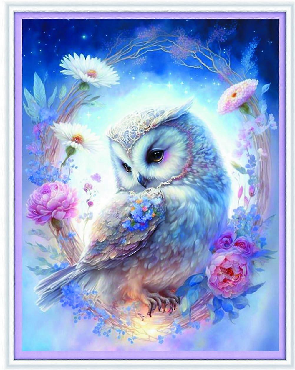 11 Count Stamped Cross Stitch Kit Owl Flower Pattern with Accessories PrePrinted Cotton Fabric 40x50cm