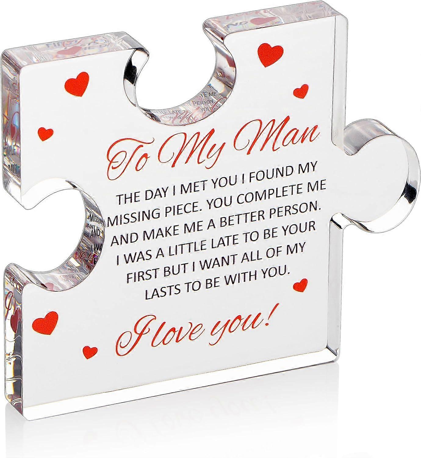 Valentine's Day Gifts for Him Engraved Acrylic Block with Red Hearts Anniversary Gift for Husband