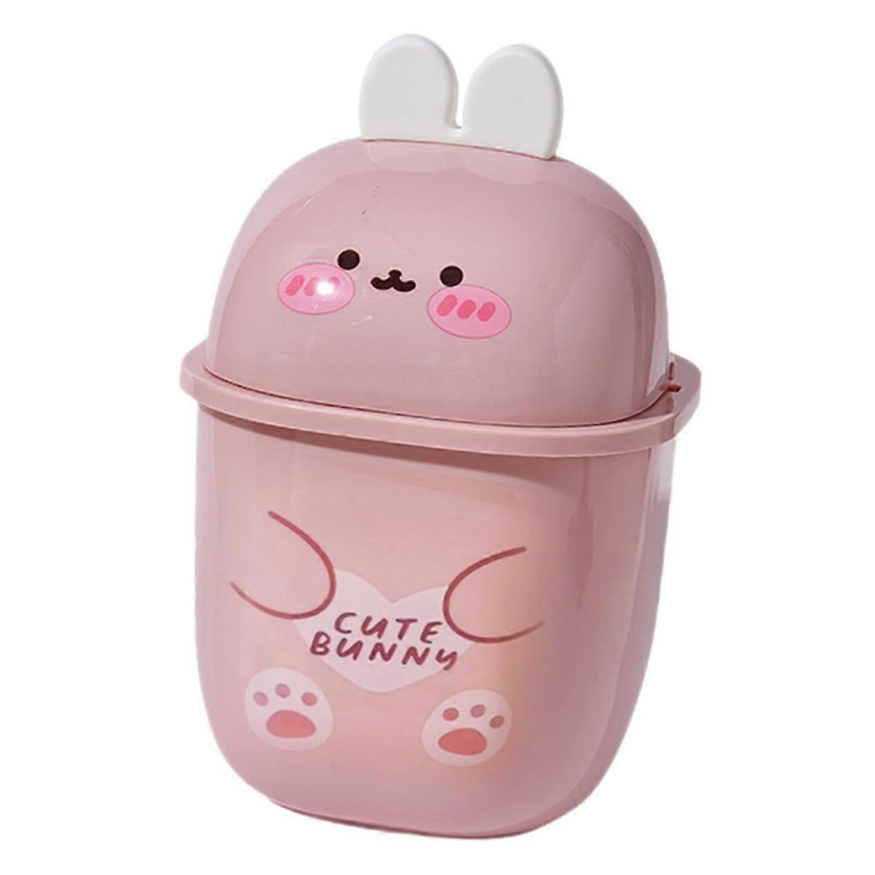 Desktop Trash Can with Lid Cute Cartoon Bunny OdorResistant Small Waste Bin for Office Bedroom