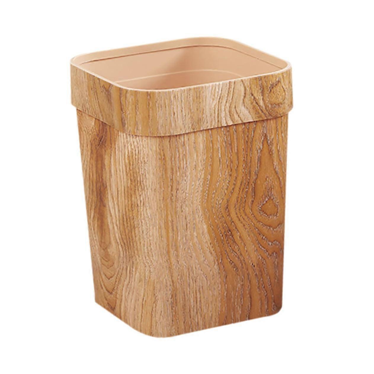 Large Capacity Square Wood Grain Trash Can for Bathroom, Kitchen and Office Waste Bin