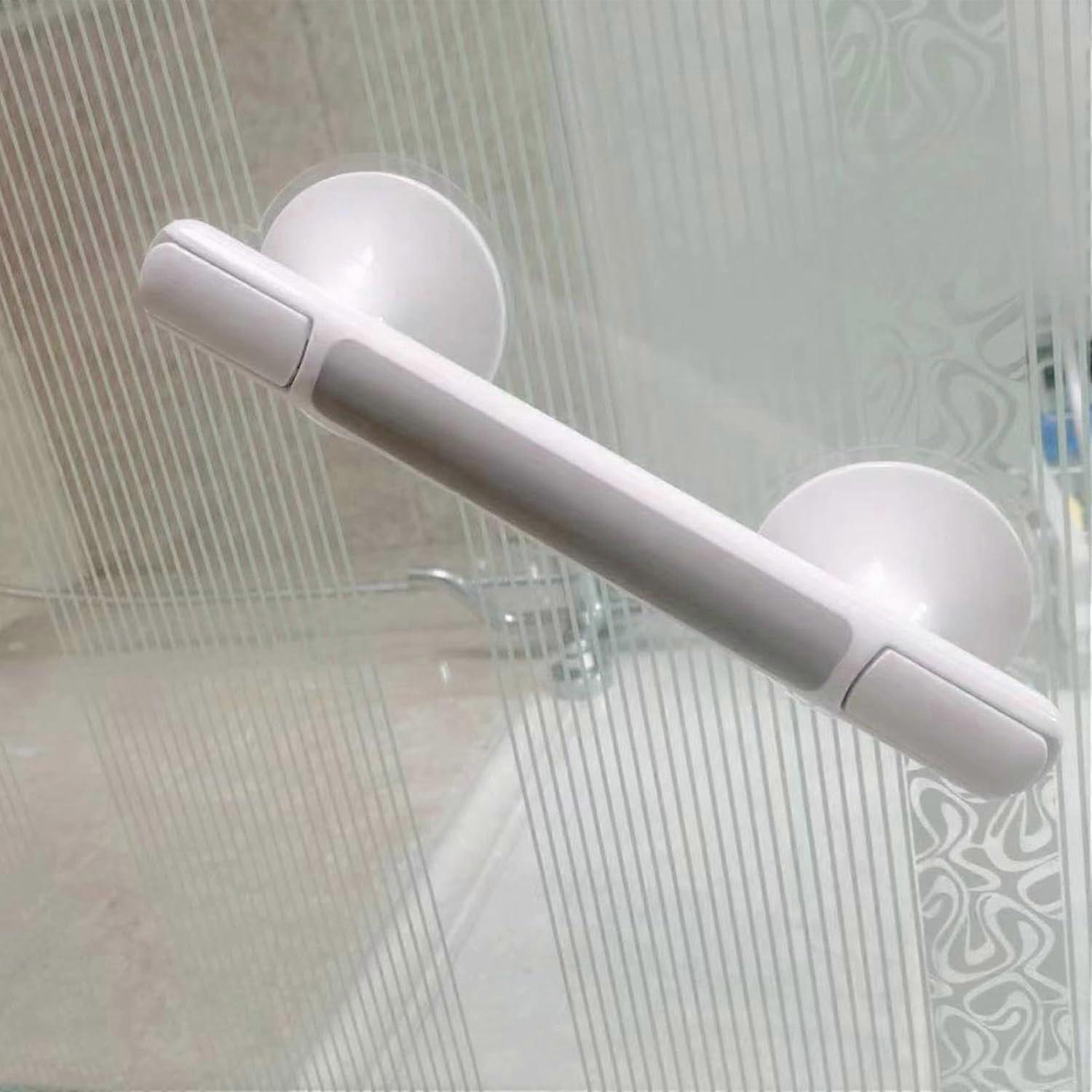 Safety reinforcement: Equipped with two robust suction cups and locking latches, this bathroom grab rail supports up to 115 kg, helping prevent unbalanced falls and improving overall safety. Durable construction: Built with tough ABS, PP, silicone, and PVC materials to provide a solid, sturdy grip that resists wear and maintains safety over time. Hassle setup: Press the suction cups onto smooth, clean surfaces to fix in seconds. The locking latch allows easy removal and reuse on metal, glass, tile, marble, stainless steel, and acrylic surfaces. Nonslip grip: Features a textured nonslip pattern and an antislip silicone wrap to deliver stable support in wet conditions. Specific use scenarios: Use in a shower or tub area to steady yourself while entering, exiting, or turning, reducing the risk of slips. Place by the toilet or sink to assist with sitting down and standing up, improving mobility for seniors or recovering individuals. Ideal for temporary or rental bathrooms where drilling is not allowed, allowing quick installation on compatible surfaces and easy relocation when needed.