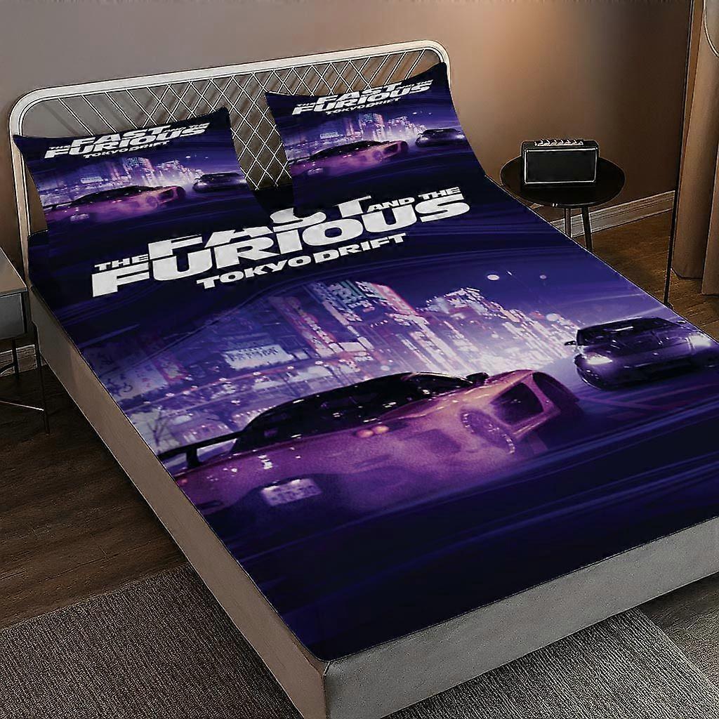 3pcs The Fast and the Furious Tokyo Drift Fitted Sheet Set Valentine's Day Print