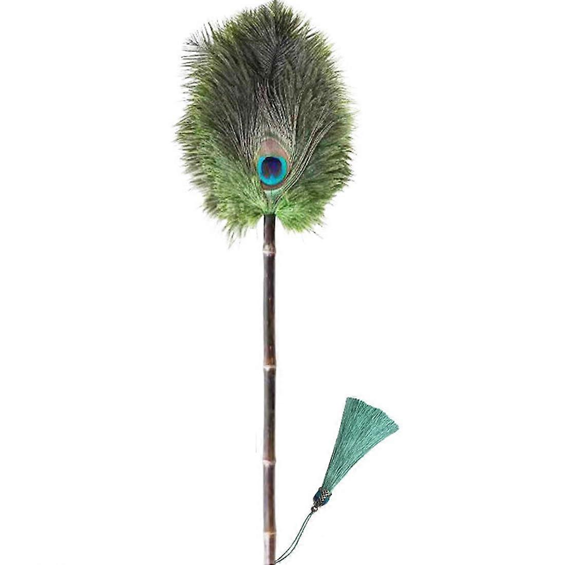 Ostrich and Peacock Feather Duster with Handle, Scratch Dust Trapping for Home Car Office Green M