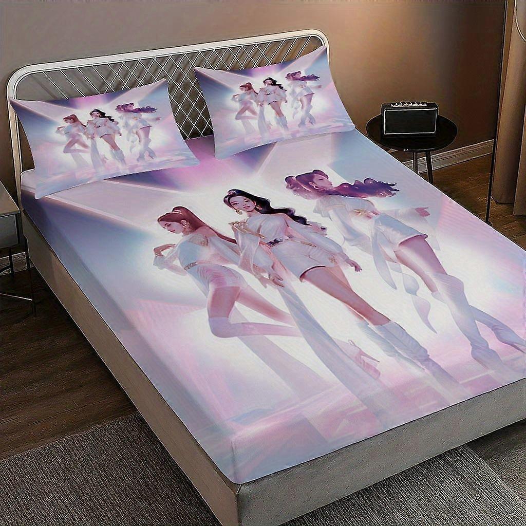 3pcs Anime Kpop Girls Printed Fitted Sheet Set High-Density Fabric