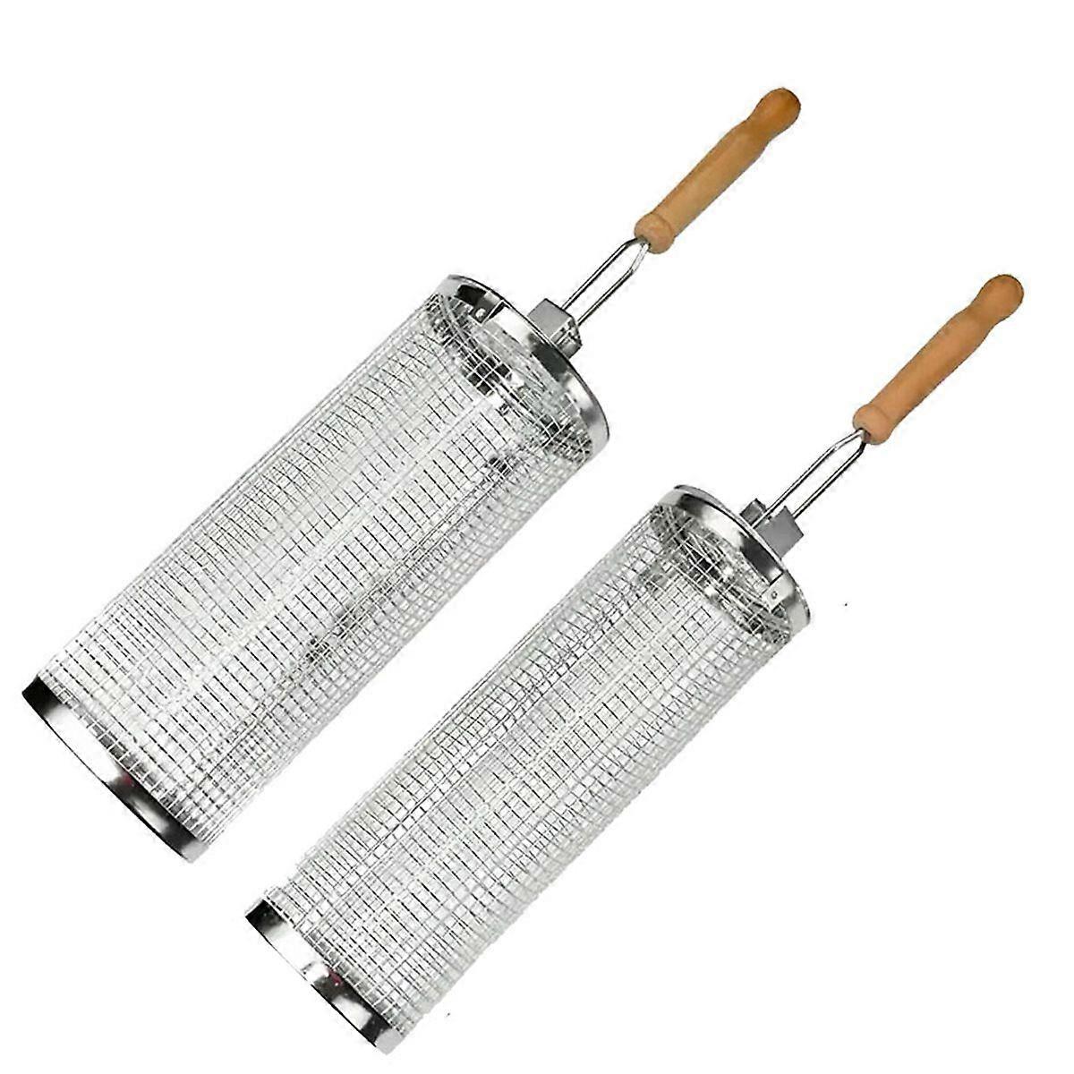 Camping Stainless Steel BBQ Grill Tube Thickened Rolling Rotating Barbecue Cage Net for Skewers,Vege