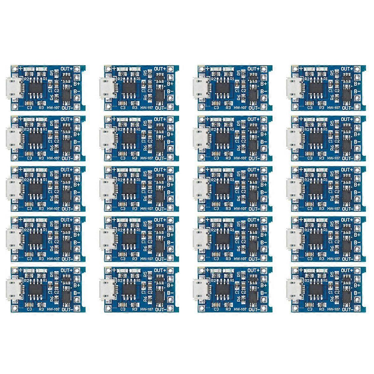 The charge should disconnect the load OUT terminal on the positive and negative can not be wrong, please according to specifications, otherwise it damage directly. Module Features and parameters:Inputs with MICRO USB/TYPE-C USB female, can be directly input to do with the phone charger rechargeable lithium battery,And still retains the input voltage wiring pads, can be very convenient DIY Input voltage: 5V;Charging cut-off voltage: 4.2V ± 1%;Maximum charge current: 1000mA;Battery over-discharge protection voltage: 2.5V;Battery overcurrent protection current: 3A;Board size: 2.6 * 1.7CM Note: The first time you access the battery, it may no voltage between the output OUT + and OUT-, then access 5V voltage charge your can activate the protection circuit, and the battery from the B + B-, then draw a line on the short open also need recharged to activate the protection circuit. Note that the charger must be to output 1A or more to do when using a mobile phone charger input, or may not charge Color: Blue Material: Plastic+Metal Specification: Micro Package Contents: 20 Pcs Charger Module Only the above package content, other products are not included. Note: Light reflection and different displays may cause the color of the item in the picture a little different from the real thing. The measurement allowed error is +/- 1-3cm.