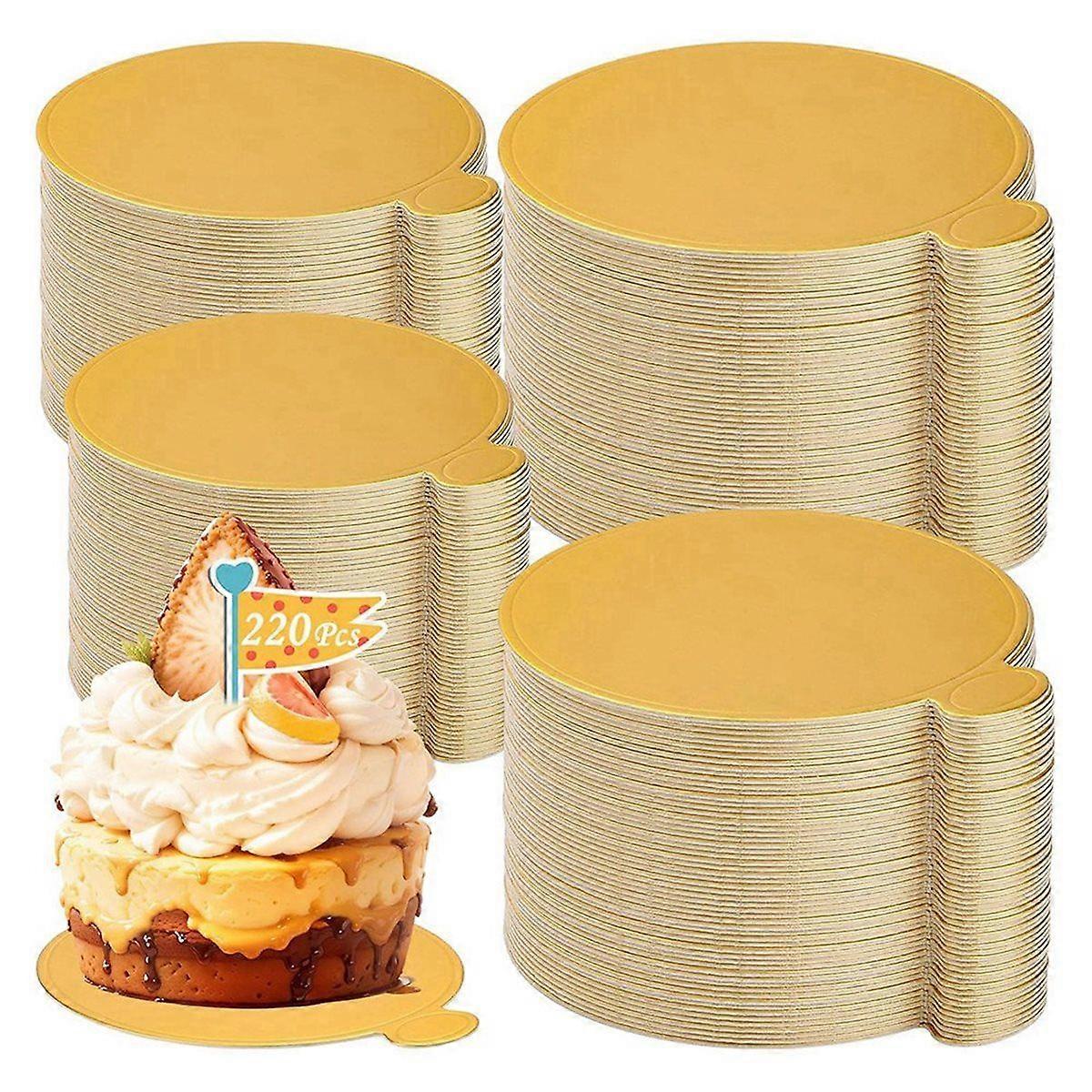 200PCS Mini Gold Cake Boards 3.5 Inch & 3.15 Inch Round Cake Base Mini Flan Tray Disposable Paper Pl