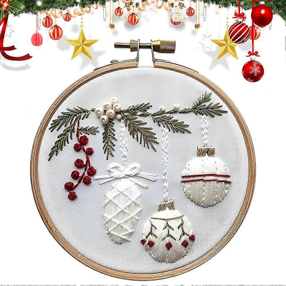 Christmas Embroidery Kit with Hoop, Festive Winter Landscape Cross Stitch Set for Beginners Adults