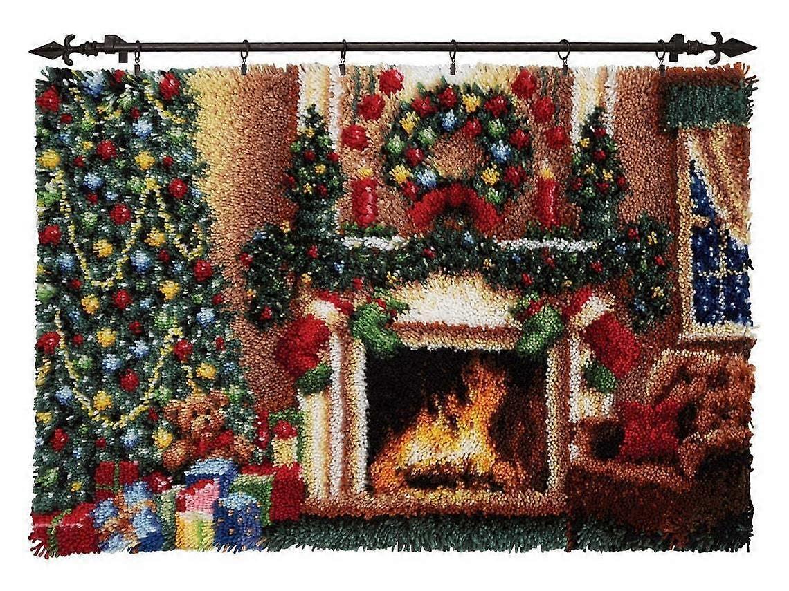 Latch Hook Kit for Adults Beginners DIY Rug Making with Yarn Canvas Crochet Needle Christmas Fireplace 60x40cm
