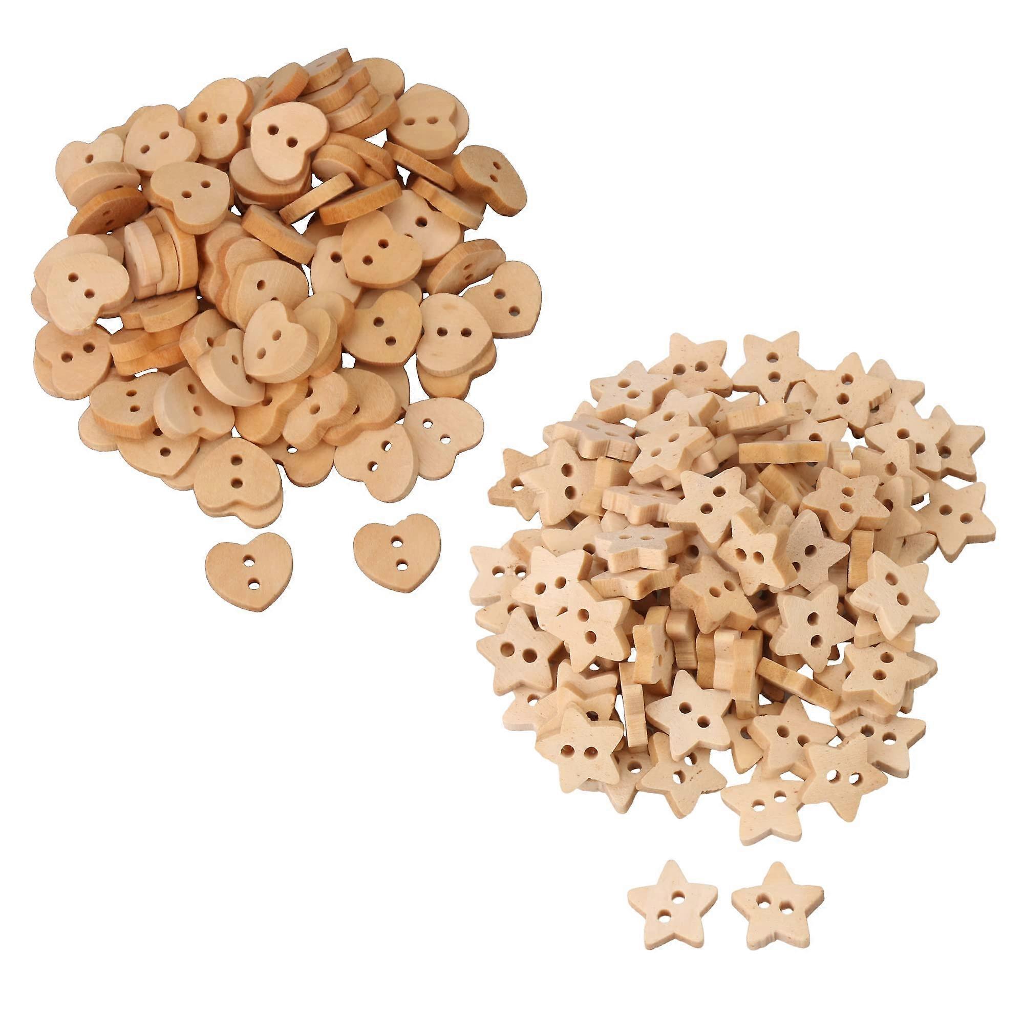 200PCS Wooden Star and Heart Buttons for DIY Crafts Sewing and Handmade Decoration