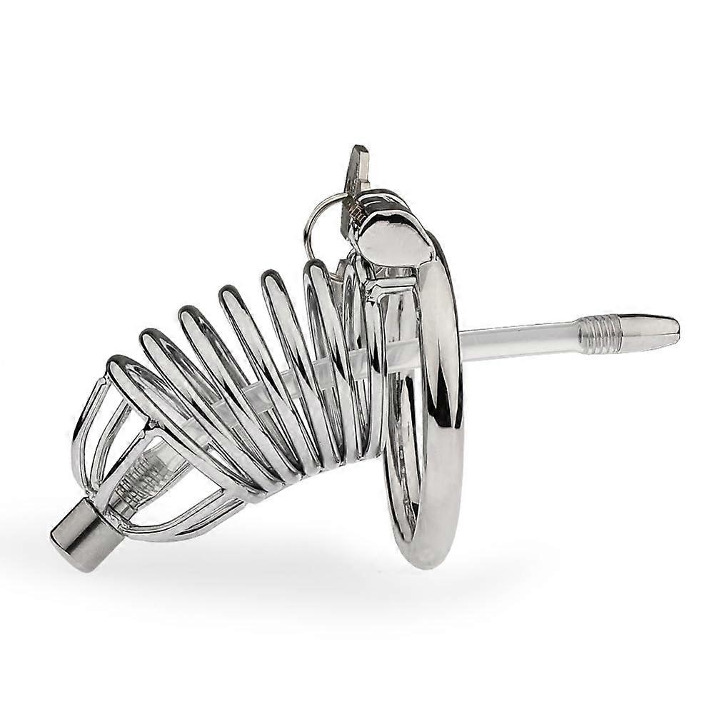 Male Chastity Device Metal Cage with Silicone Catheter and Invisible Lock 40mm for Prolonged Pleasure