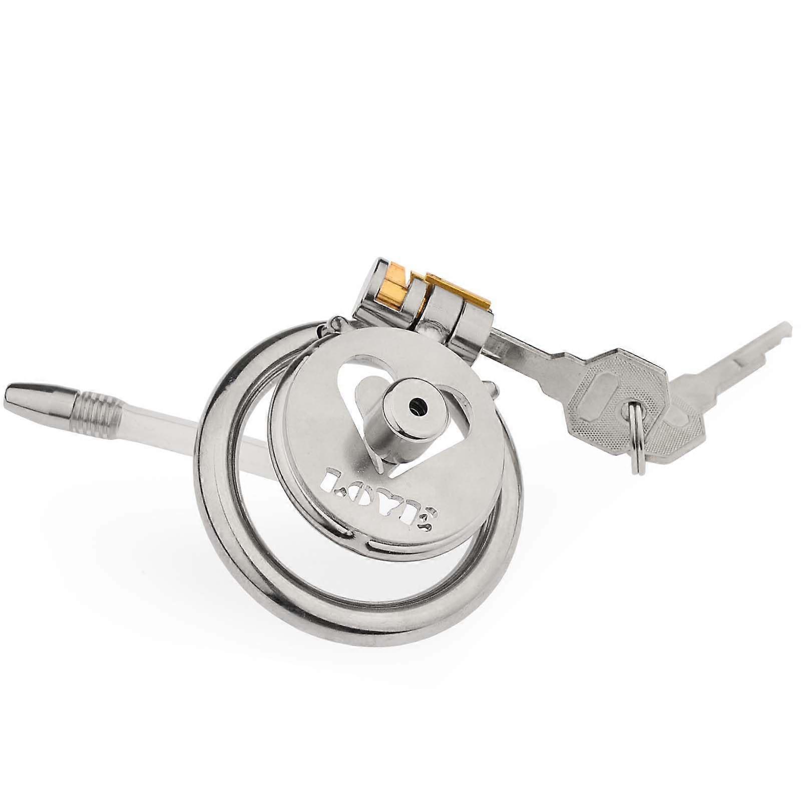Steel Male Chastity Device Cage with Tube, Adjustable Lock and 4 Removable Ring Size Options (45mm)