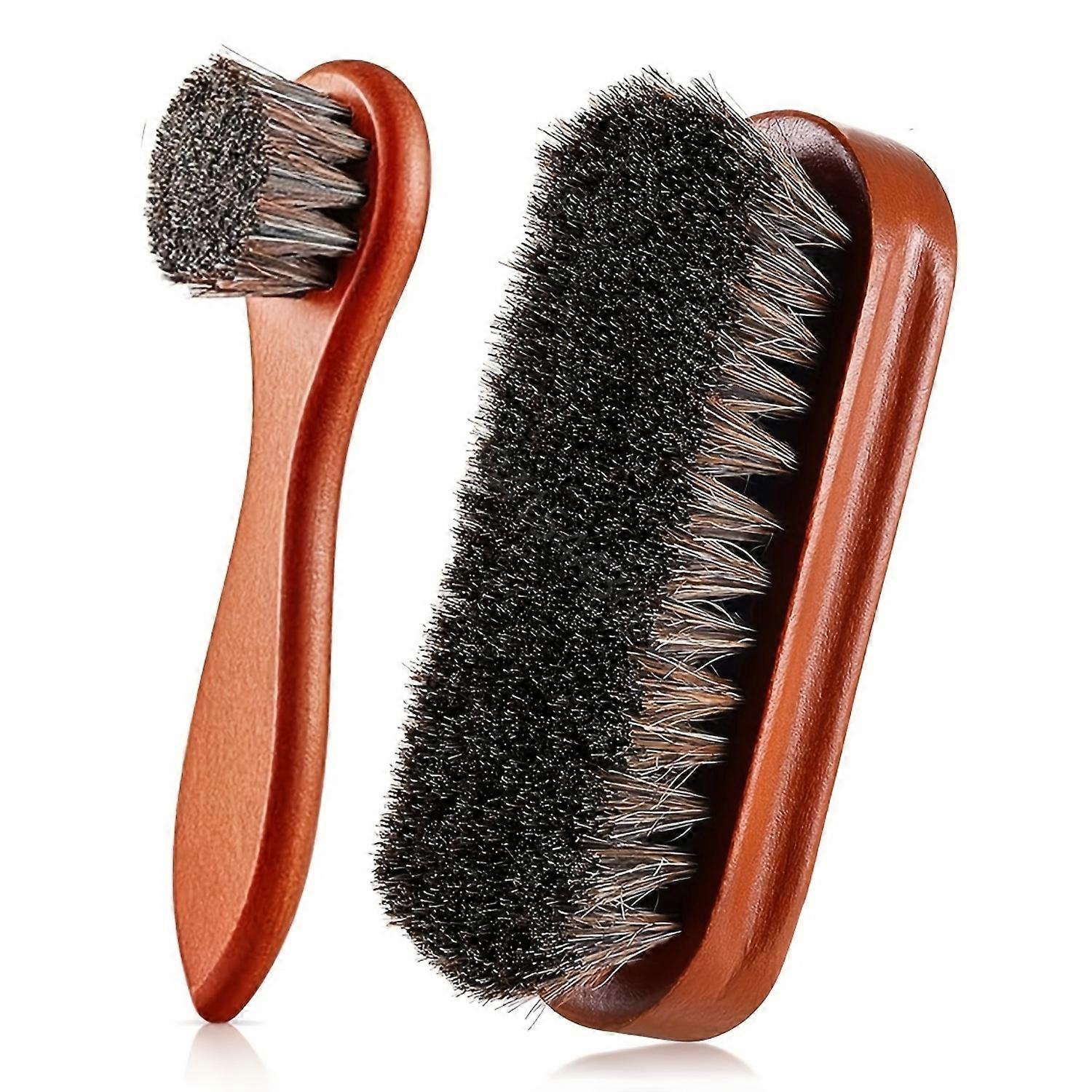 2pcs Horsehair Shine Shoes Brush Kit Polish Dauber Applicators Cleaning Leather Shoes Boots Care Brushes Suede Cleaner Brush