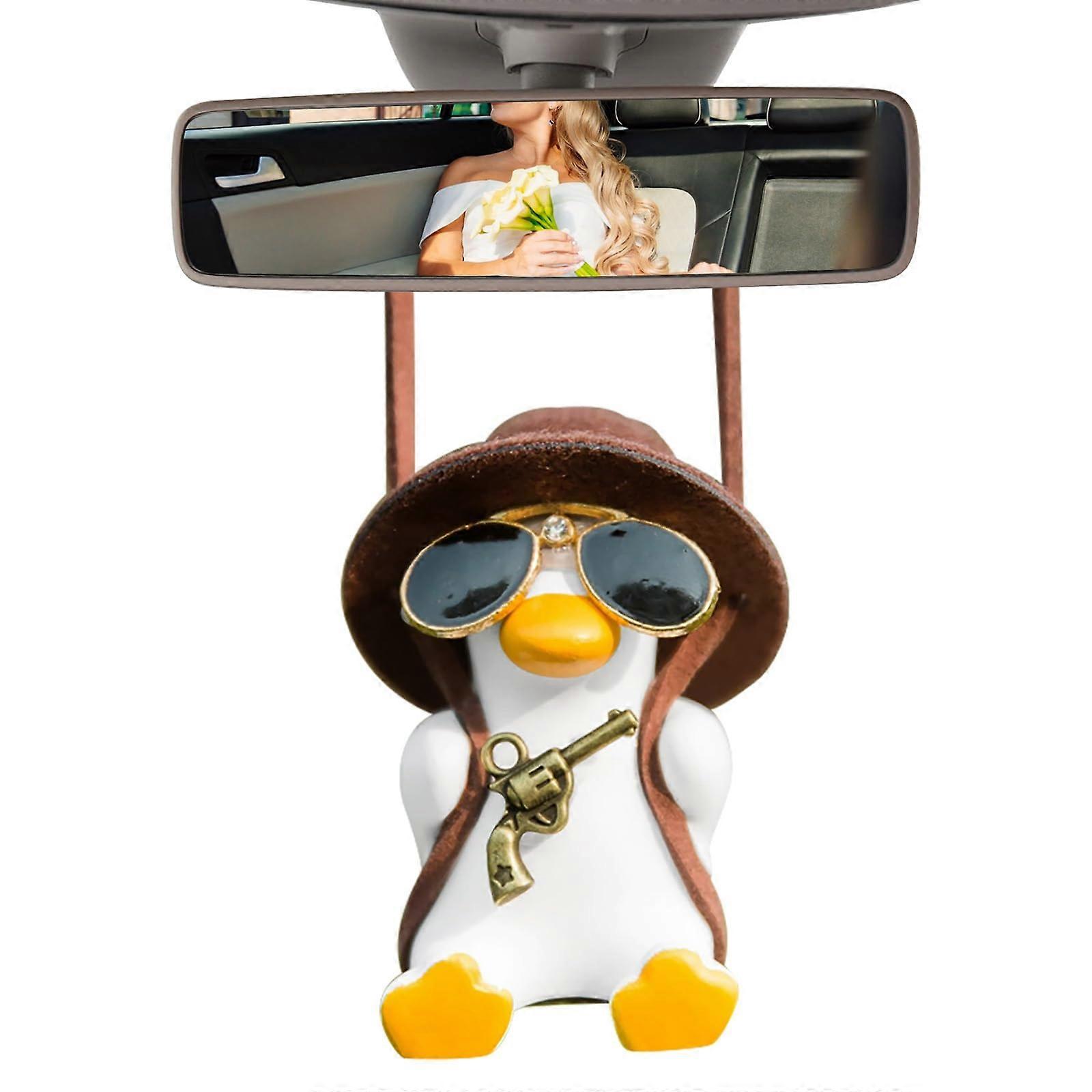 Swinging Duck Car Ornament with Smooth Rocking Motion, Cute Rear View Mirror Hanging Decoration