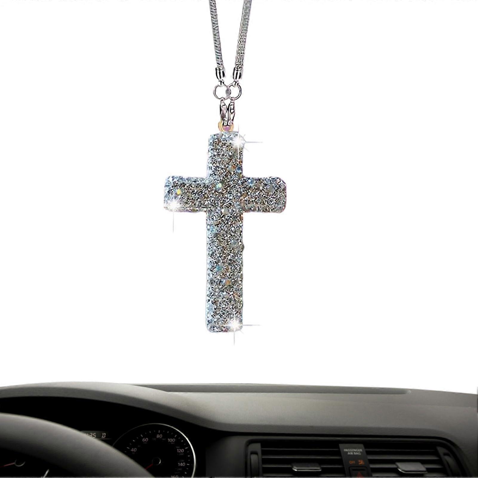 Car Rear View Mirror Charm with Sparkling Rhinestones, Christian Spiritual Protection Crystal Ornament