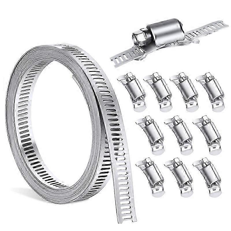 Stainless Steel Hose Clamp Kit, 10-Pack Adjustable Pipe Clamps, 9.84ft Band