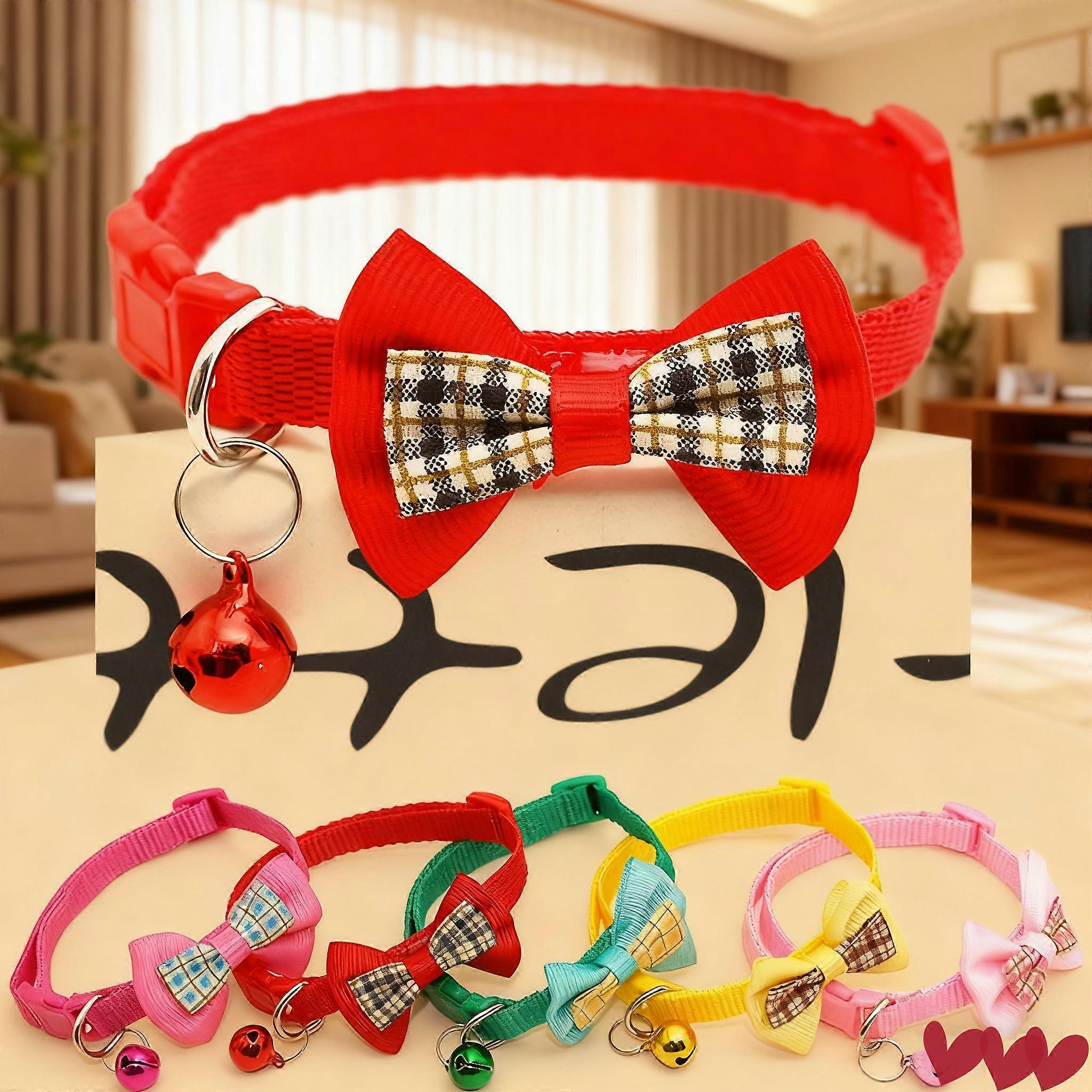 Cat collar with dog bell, cute multi-color plaid bow bell collar, adjustable pet bell collar.