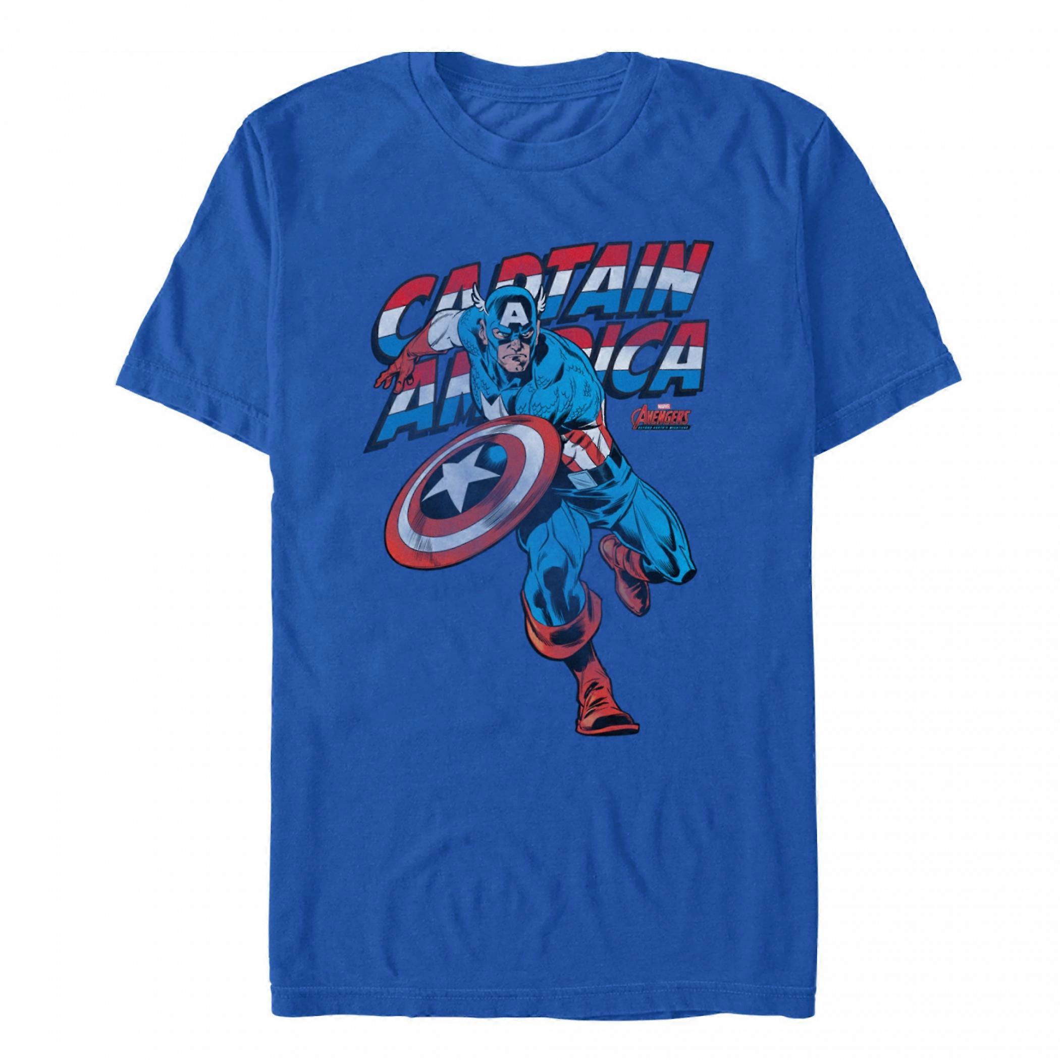 Lead the charge like Steve Rogers mid-battle with this officially licensed Captain America Shield Wielding Avenger T-Shirt. Made from cotton, this blue t-shirt features Cap in action with his iconic shield raised—bringing bold Marvel energy to any mission, on or off the field. All sizes are US sizes.