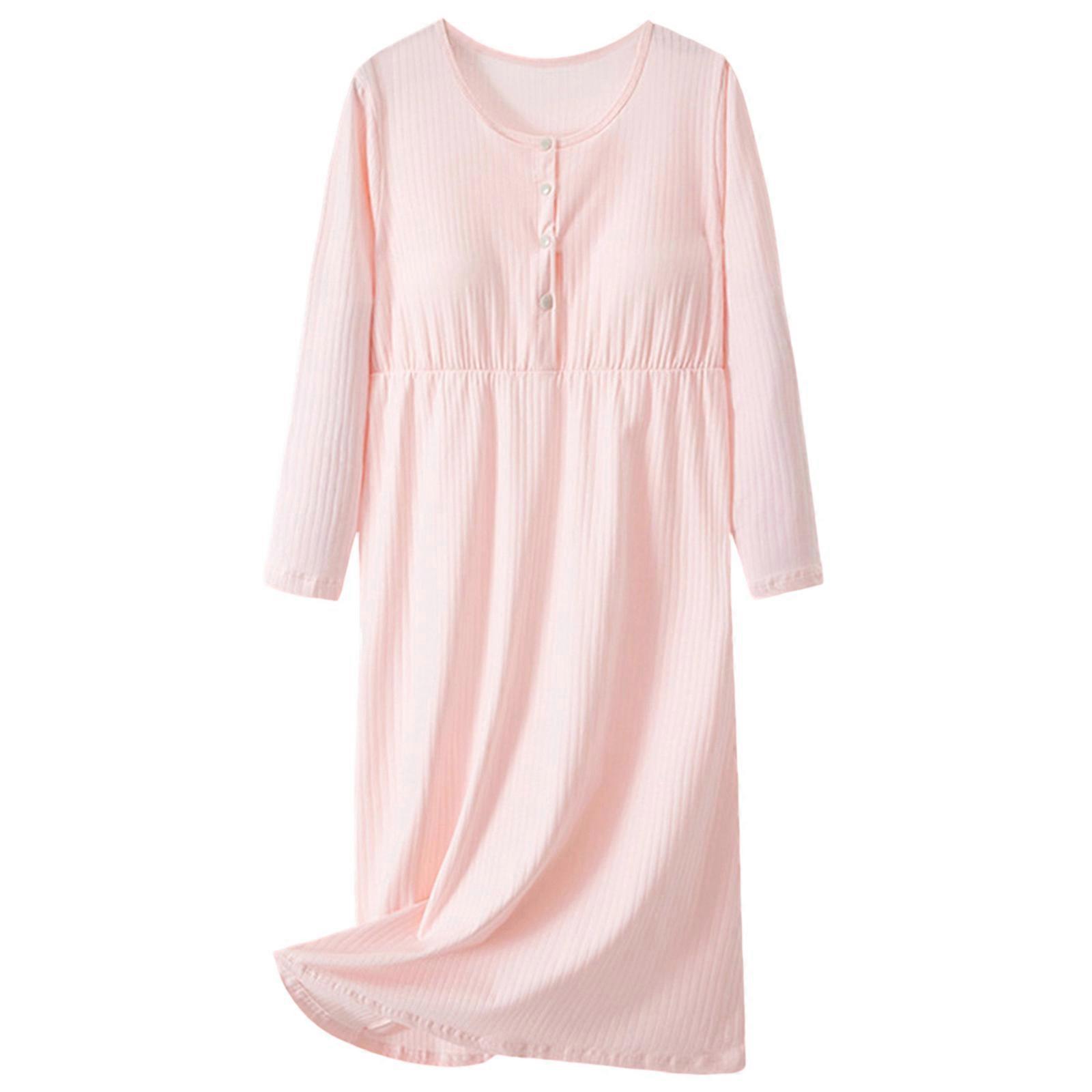 Postpartum Nursing Dress Nightgown Long Sleeve Cotton Nightdress for Easy Breastfeeding and Comfortable Maternity Sleep light pink XL