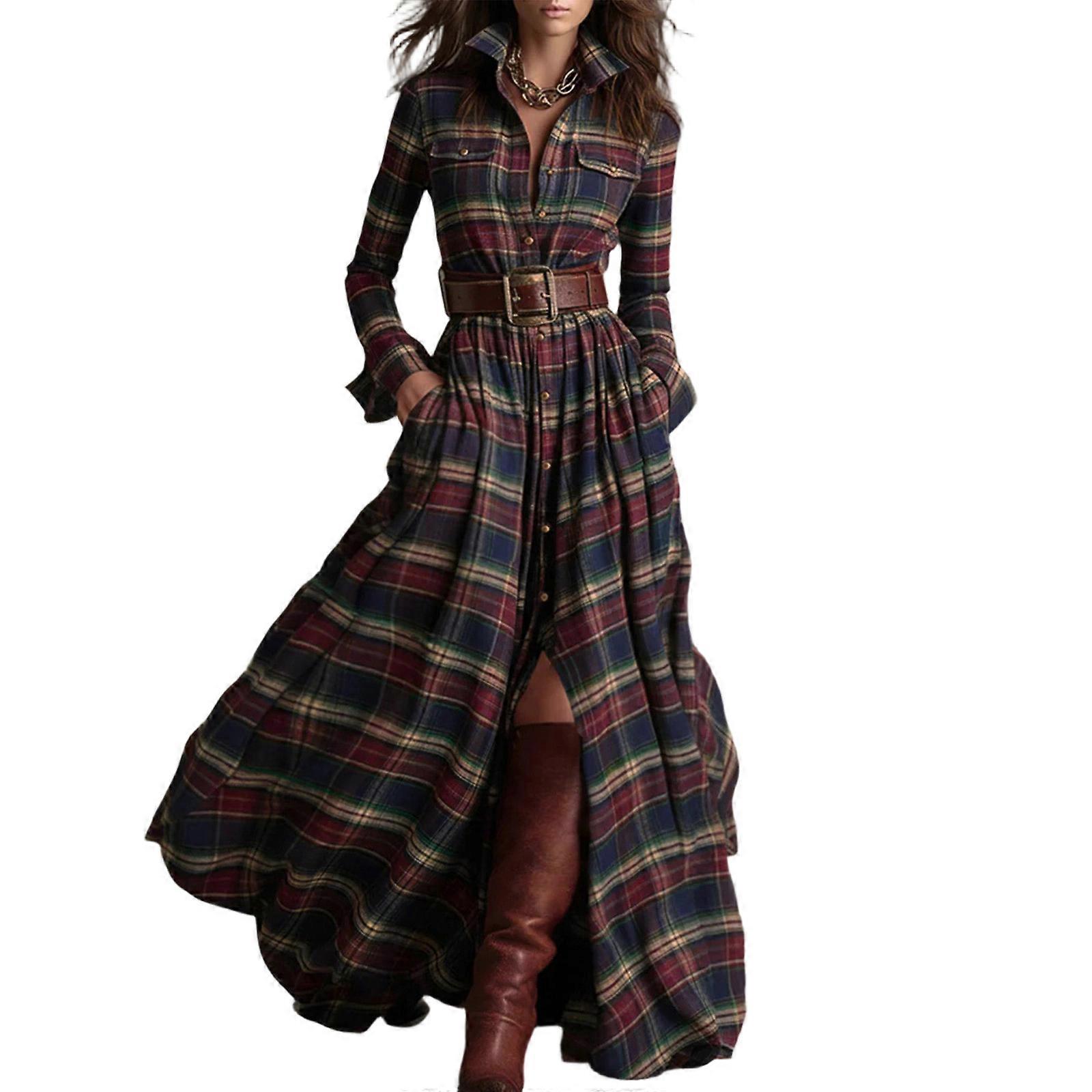 Breathable Polyester Grid Dress Irregular Cut Lightweight Casual Dress for Summer Outdoor Activity Travel and Leisure Burgundy XL