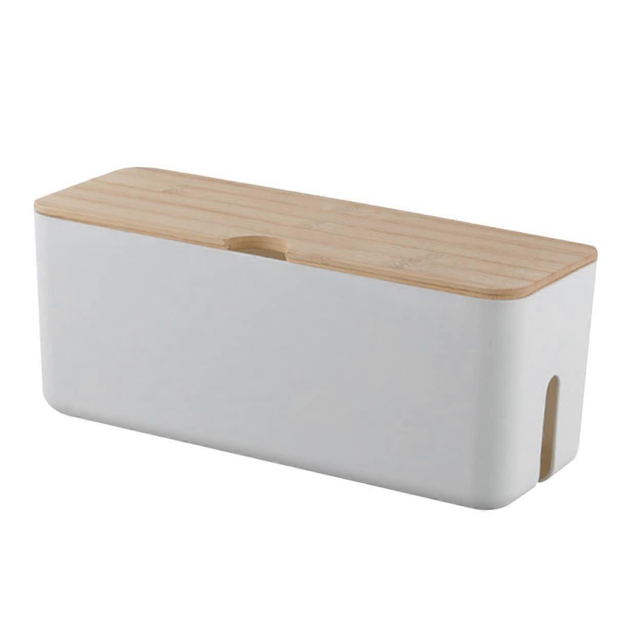 Wooden Cable Management Box with Heat Dissipation Lid Cord Organizer for Home Office Storage