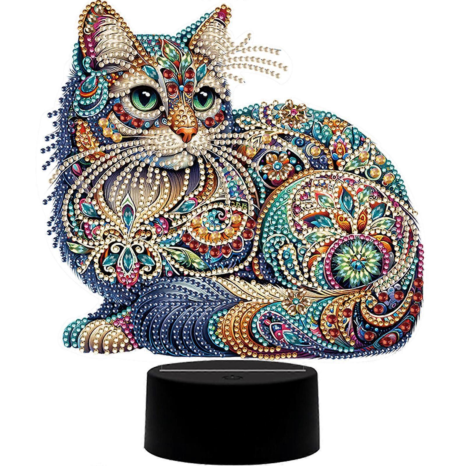 Flower Animal Diamond Painting LED Lamp with Tools DIY Diamond Painting Table Lamp Acrylic for Bedroom Living Room Home Office