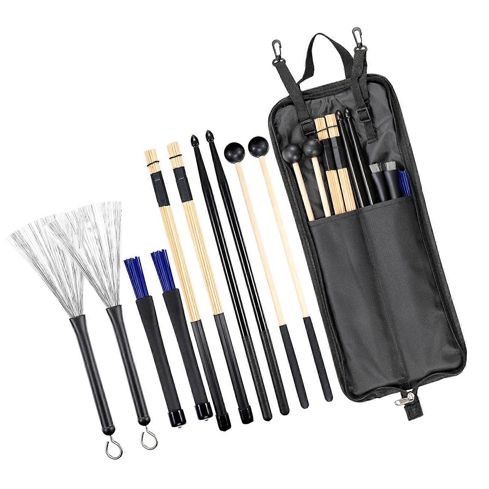 Portable Drum Accessories Set Drumsticks Brushes Mallets Waterproof Oxford Storage Bag for Easy Transport Organization Multicolor