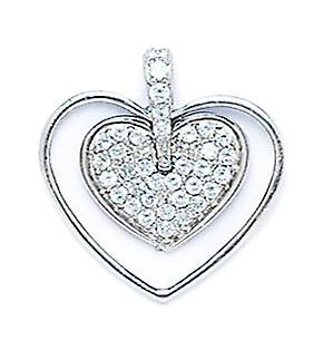 14k White Gold Cubic Zirconia 2 Hearts Pendant - Measures 20x19mm - in 14k White Gold - - [ Potential Enhancement Methods: cubic zirconia ] - Synthetic. Some are covered with a product that makes the stone more durable. - [ Care and Handling: cubic zirconia ] - Clean with warm soapy water and a soft cloth. -