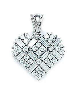 14k White Gold Cubic Zirconia Large Love Heart Pendant Necklace 21x16mm Pendant for Women