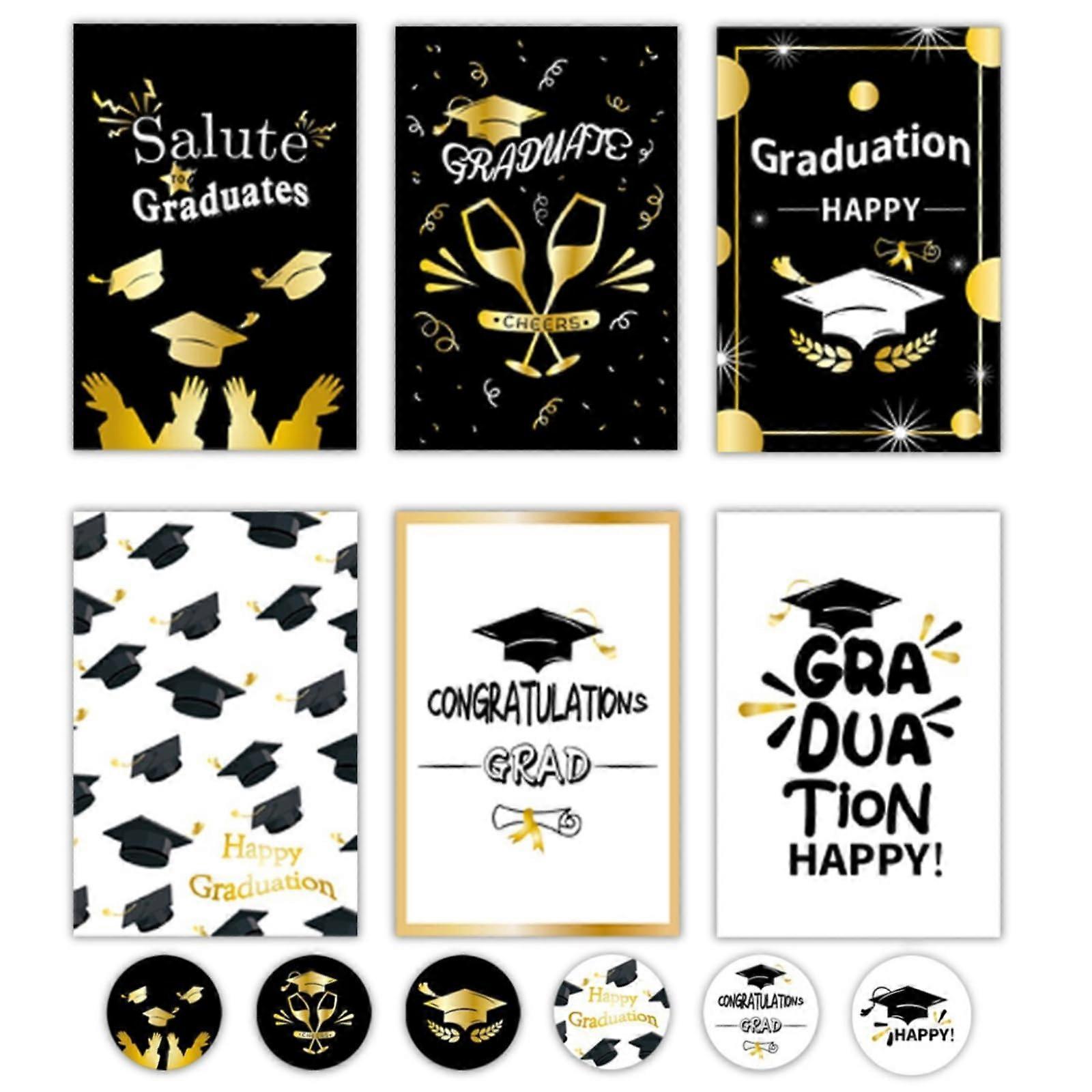 6pcs Black and Gold Graduation Cards with Envelopes and Stickers, Party Invitations Set