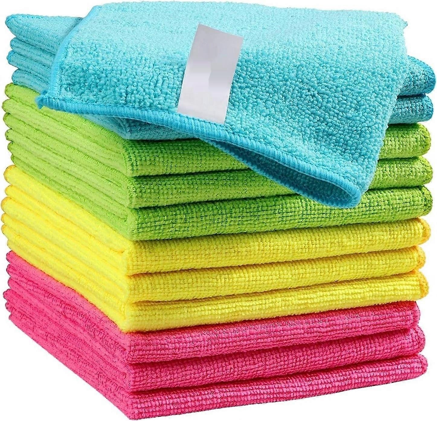 Microfiber Cleaning Cloth 12 Pack Cleaning Rags Cleaning Towels with 4 Color Assorted 11.5"X11.5"(Green/Blue/Yellow/Pink)