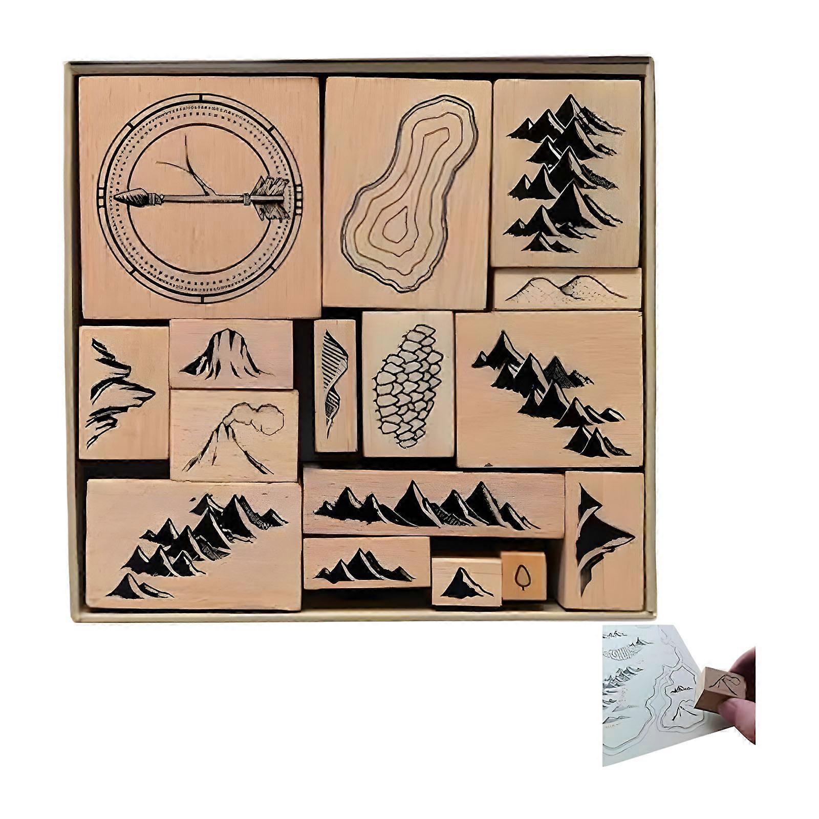 16Pcs Landscape Themed Stamp Wooden Rubber Stamp Scrapbooking Stamping Tool for Travel Journal Notebook Card Making Multicolor