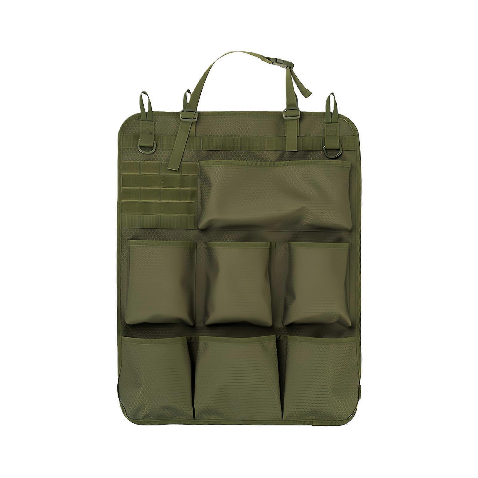 Oxford Fabric Car Seat Organizer With 8 Pockets Adjustable Straps and Water Repellents Finish for Tidy Cabin Green Color