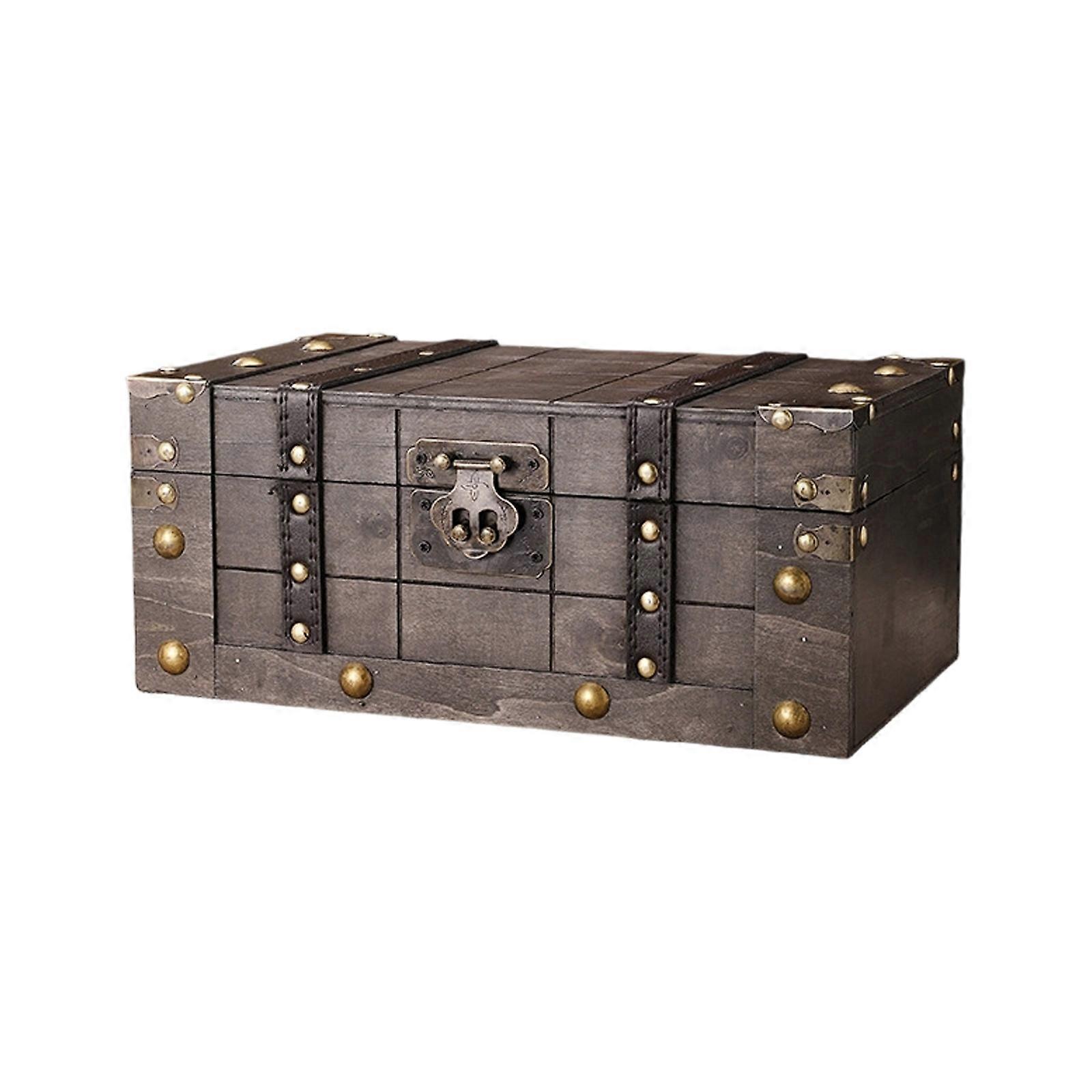 European Wood Storage Chest Featuring Metal Lock For Secure Storage Of Valuables And Decorative Home Accent S
