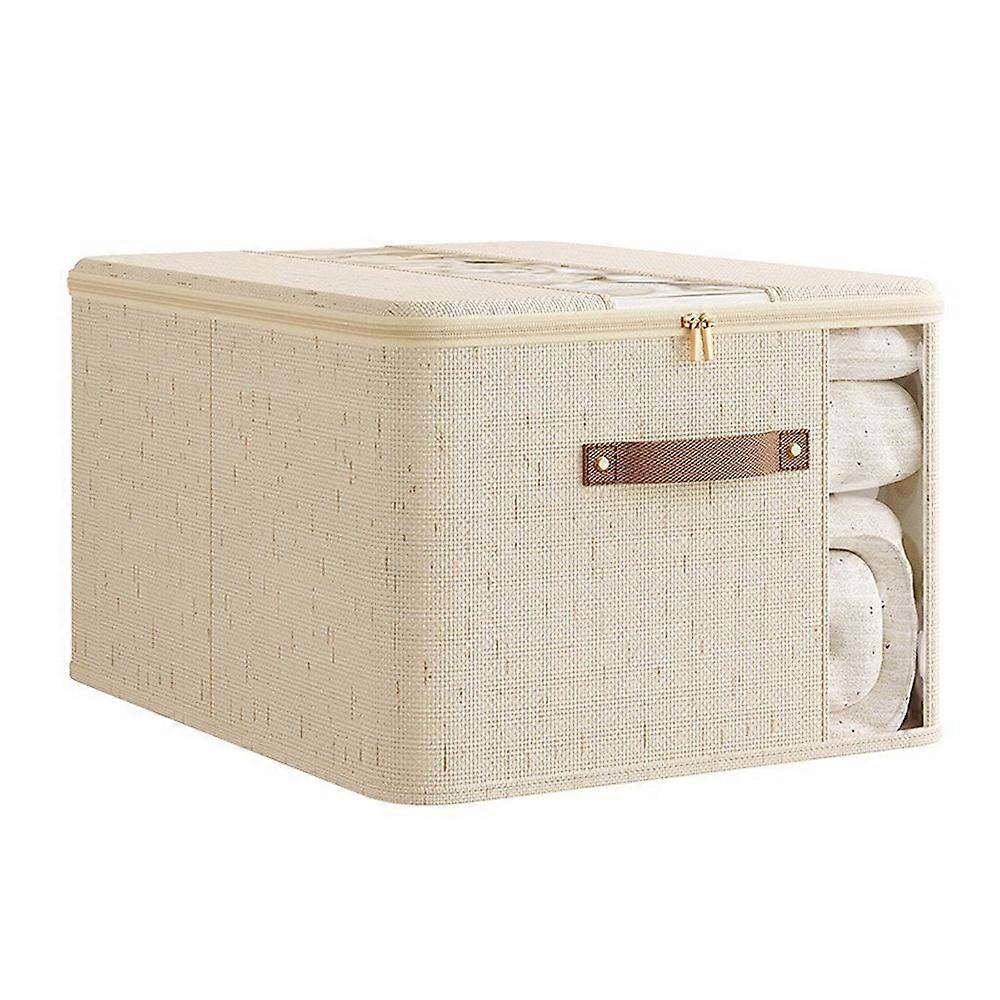 50×40×30cm Oversized Cotton Linen Storage Box Dual-Window Zippered Organizer with Handles
