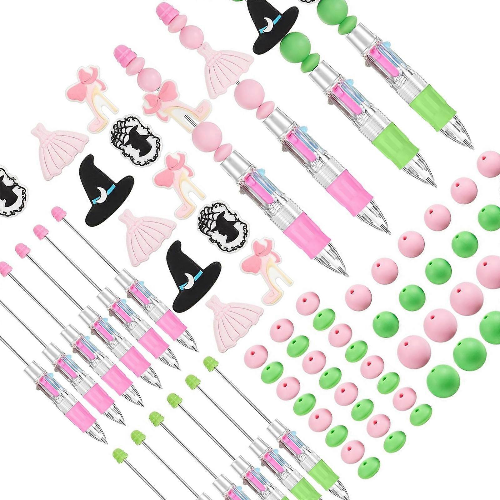 12Pcs Witch Princess Themed Beading Pen 4-Color-in-1 Multicolored Ballpoint Pen for Student Kid School Craft Project Multicolor