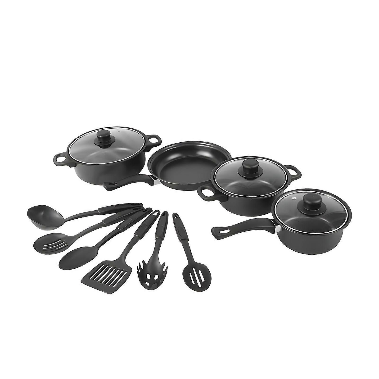 Pack of 13 Sturdy Iron Cookware Set Features Even Heating Nonstick Properties for Effortlessly Meal Preparation Multicolor