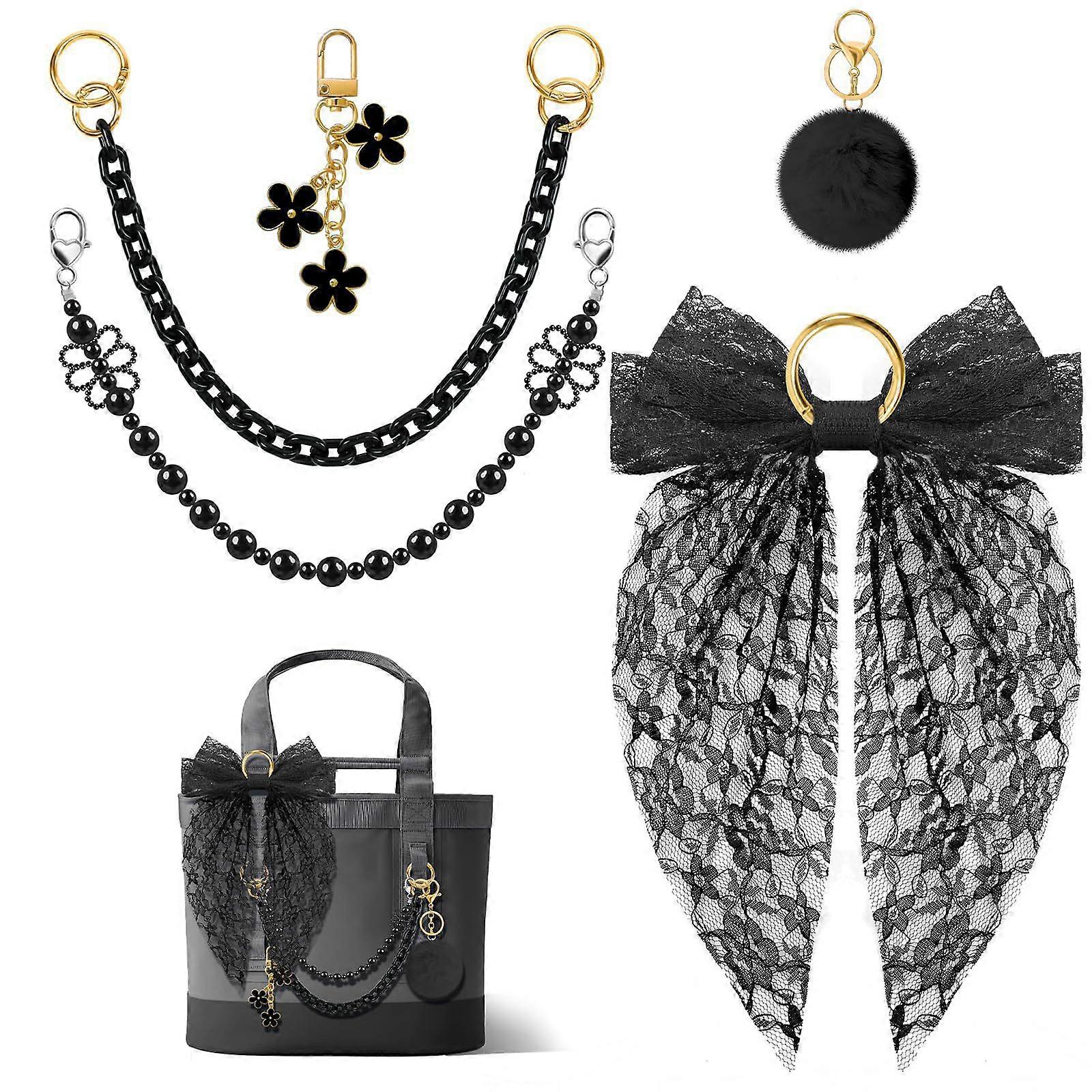 Features: This versatile 5 piece keychain set features elegant bow designs, soft plush ball, and faux pearl strands, offering a stylish and lightweight accessory to personalize your bags or keys effortlessly. Crafted from sturdy plastic, fabric, and alloy, each item includes a delicate bow, shimmering pearl beads, a plush plush ball, and adjustable chains for easy attachment and craft customization. Ideal for students, office workers, and fashion enthusiasts seeking unique and functional decorations to enhances their daily routines with a touch of individuality. Perfect for adding charm during commutes, parties, or craft projects, these keychain accessories elevates your styles in various settings like outdoor activities or casual outings. Made from user friendly materials, the set ensures comfort and durability, resisting rust for efficient use in humid environments while providing a pleasant tactual experience. Specifications: Materials: Plastic+Fabric+Alloy Bowknot Size:Appox.11.81inches Bag Chain Size:Approx.12.4inches, 15.16inches Flower Keychain Size:Approx.3.39inches Plush Ball Keychain Size:Approx.4.92inches Type: 9 Types Optional, Please Refer to Pictures to Select Package Includes: 5Pcs Butterfly Knot Pearl String Bag Chain Hairball Keychain Pendant Set note: 1.Please allow 1-2cm errors due to manual measurement, making sure that you will not mind before order. 2.Due to the differences between different monitors, the picture may not reflect the actual color.