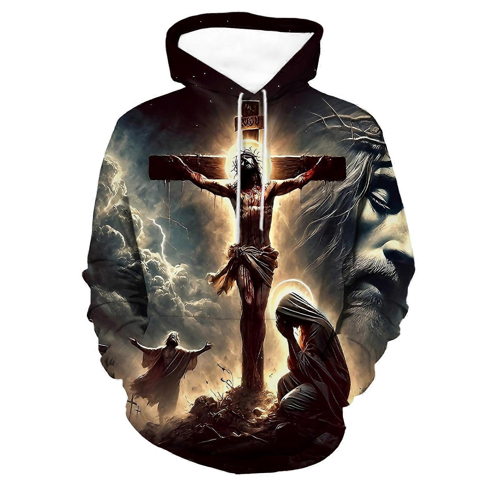 Men ’s 3D Hoodie Dramatic Cross Scene Graphic Hoodie Art Print Pullover Statement Casual Top