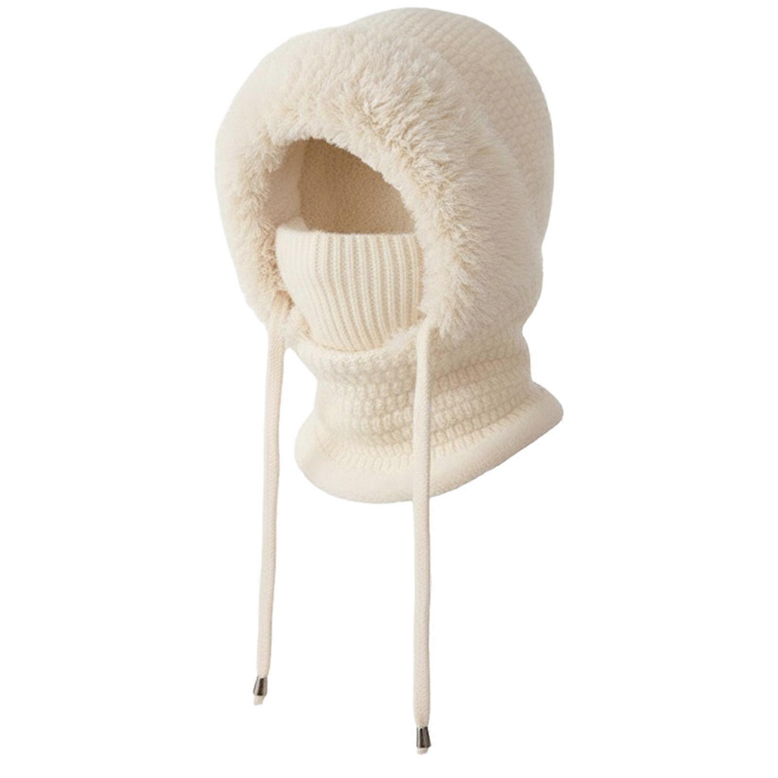 Women 3 in 1 Hooded One Piece Snow Cap with Scarf and Mask Hooded Skull Cap Fleece Lined Knit Hat Set