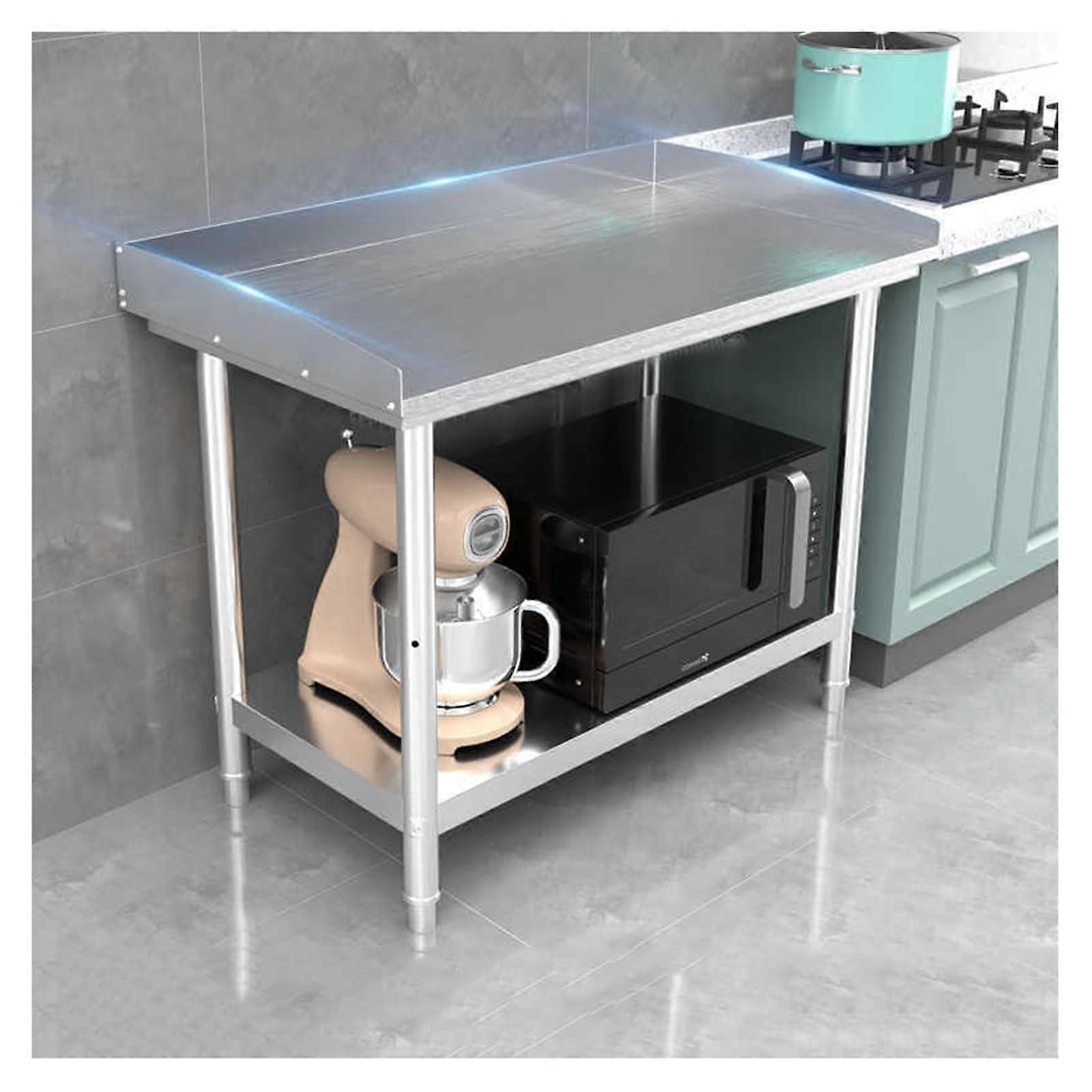 Stainless Steel Kitchen Workbench – Durable, Practical, and Built for Everyday Use • Generous workspace and storage The wide tabletop offers plenty of room for efficient chopping, mixing, and food preparation. The open shelves underneath keep knives, bowls, utensils, and small appliances within easy reach, eliminating the need to search for tools midtask. • quality stainless steel construction Built from sturdy stainless steel, this workbench resists deformation and holds up under heavy loads. Designed for longterm use, it maintains its functionality and appearance even with frequent kitchen demands. • Stable performance on any surface Adjustable feet allow you to finetune the height and achieve stability on uneven floors. Simply rotate the feet to level the table, ensuring a steady work surface in any environment. • Reinforced triangular fixing system The threedimensional triangular corner risers are securely connected to the columns, reducing the risk of detachment. Columns are reinforced with thicker middle beams and wrapped with a robust keel on the outside, delivering stability and preventing deformation. Practical applications: 1. In commercial kitchens, it serves as a reliable prep station with quick access to essential tools. 2. In home kitchens, it provides ample counter space for baking, meal prepping, or hosting cooking sessions. 3. In catering setups, it offers a portable and sturdy station for onsite food preparation. This stainless steel workbench combines durability, efficiency, and adaptability, making it an essential addition to both professional and home cooking environments.