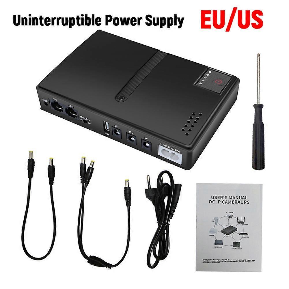 [DETAIL]<br>DC1018L Mini Portable UPS Backup Power Adapters 5V 9V 12V Uninterruptible Power Supply UPS Backup Battery for WiFi Camera Router Speaker<br>Feature:<br>1. Wide Applications:<br>Power various small devices such as cameras, portable DVD players, access control systems, security monitoring systems, cameras, fingerprint attendance machines, and fire safety systems with this compact mini portable UPS.<br>2. Enhanced Safety:<br>This mini UPS backup battery features overcharge protection, overcurrent protection, short-circuit protection, and over-discharge protection, ensuring stable power supply for your devices.<br>3. Multi-Device Compatibility:<br>Equipped with dual output ports, this backup power adapters can power two devices simultaneously. With a large capacity of<br>10400mAh<br>, it provides reliable and uninterrupted power for your devices.<br>4. Portable Convenience:<br>Whether you are traveling or working remotely, you can easily carry this mini uninterruptible power supply with you. Its portable and space-saving design allows you to conveniently fit it in your bag or suitcase.<br>5. Gift:<br>Surprise your family and friends with this mini battery backup that offers quick operation and reliable power in emergency situations. It makes a thoughtful birthday, housewarming, or anniversary gift.<br>Specification:<br>Origin: Mainland China<br>Router: UPS<br>Power supply type: Uninterruptible power supply<br>Power supply: 4 18650 lithium batteries with a standard voltage of 3.7V are required, and the discharge rate should not be less than 2C (according to the instructions in the battery box, make sure to insert the battery in the correct direction) (The product does not include batteries, you need to bring your own)<br>Casing material: ABS<br>Product size: about 161.00x105.00x34.00mm<br>Product size: 6.34x4.13x1.34inch<br>Note:<br>Due to different monitor settings and lighting conditions, the actual color of the item may vary slightly from the pictures. Thanks for your understanding!<br>Please allow a 1-2 cm difference in measurements due to manual measuring.<br>1 X UPS Backup Power Supply<br>1 X Power Cord<br>2 X Connection Cables<br>1 X English Manual<br><br>[ATTRIBUTES]<br>- Battery Included: No<br>- High-concerned chemical: None<br>- Brand Name: ALLOET<br>- Battery Included: No<br>- High-concerned chemical: None<br>- Brand Name: ALLOET<br>- Origin: Mainland China