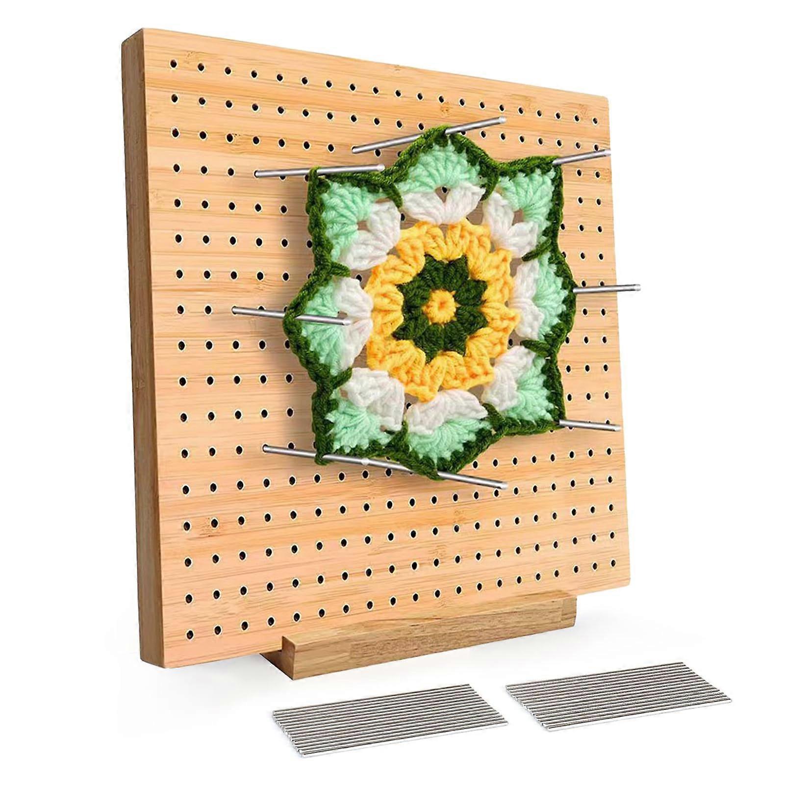 Crochet Blocking Board with 20 Pins, 11 Inch Wooden Knitting Board for Professional Shaping