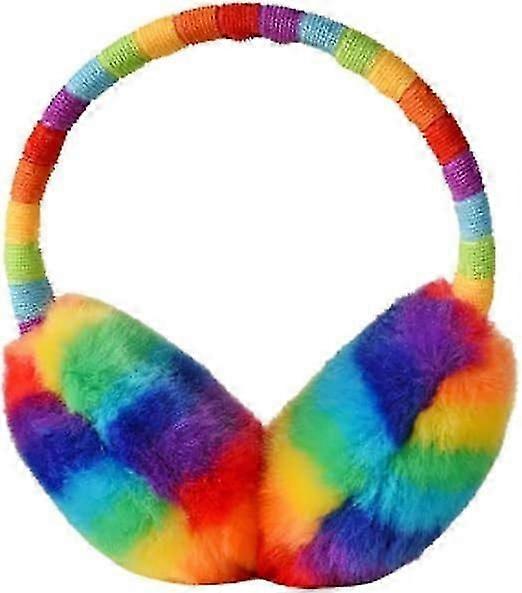 Kids rainbow earmuffs, winter ear warmers for outdoor skiing and thermal protection. Material: Artificial fur, lightweight, breathable, and comfortable. Features: Fluffy softness, great insulation, foldable design. Suitable for ages 3-8 years, multi-functional for various activities.
