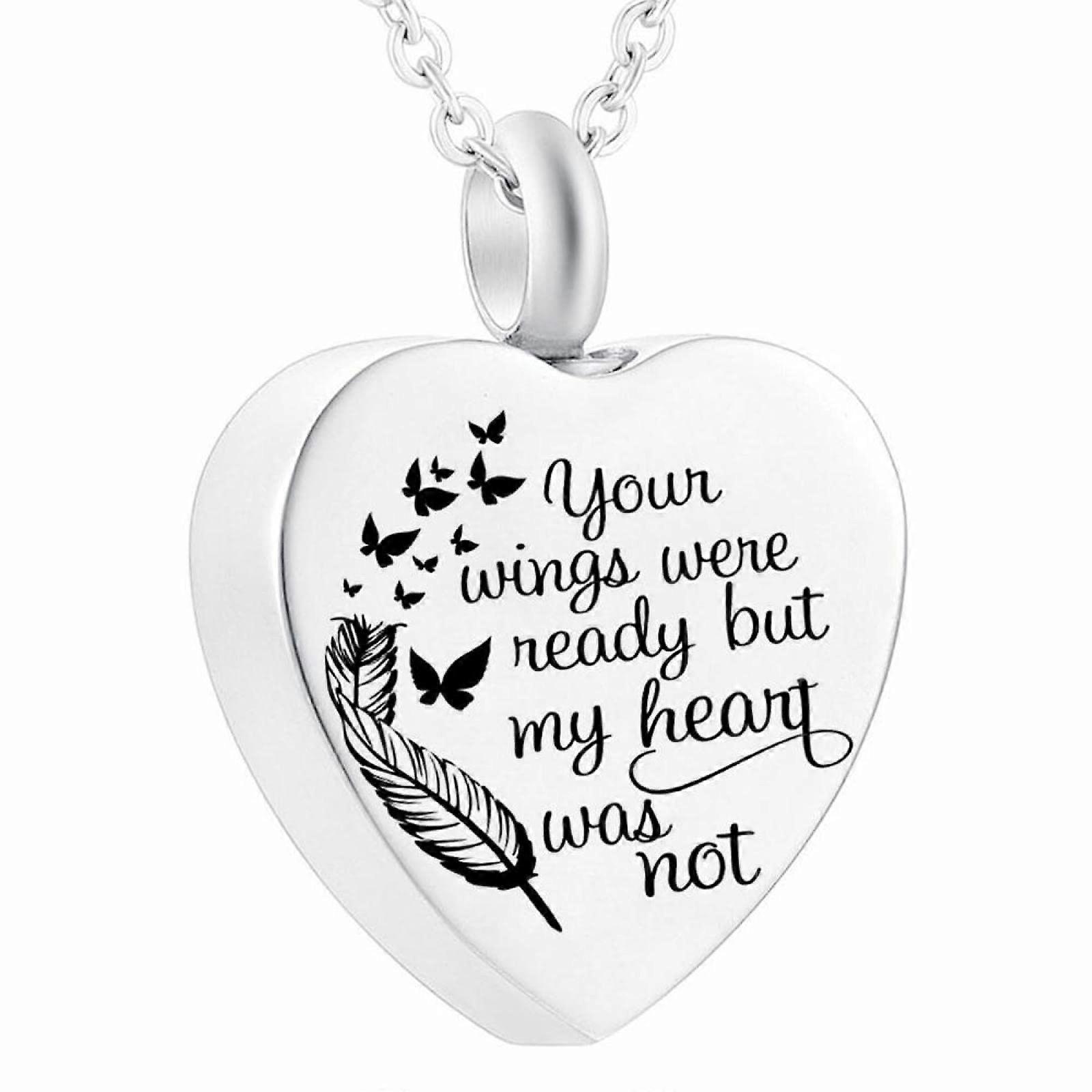 Heart Cremation Urn Necklace for Ashes Angel Memorial Pendant Stainless Steel with Fill Kit
