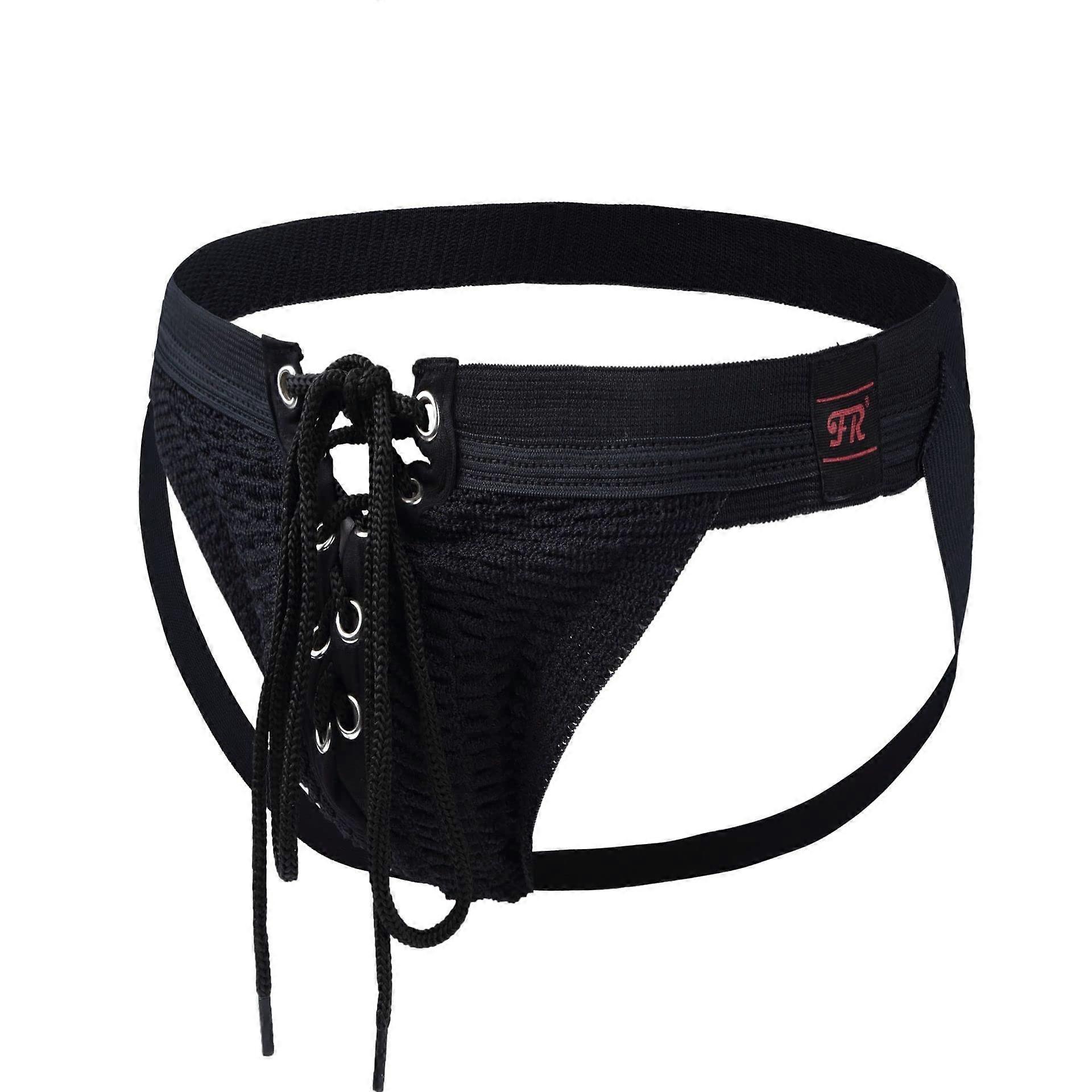 Men's Jockstrap Athletic Supporter with Contour Pouch Breathable Elastic Fabric Adjustable Drawstring XL Black
