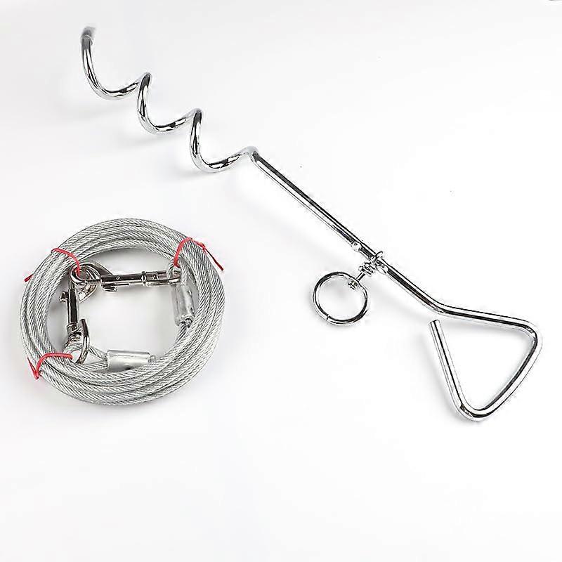 Heavy Duty Dog Tie Out Stake and Leash for Large Dogs, Secure Outdoor Yard Anchor White V05